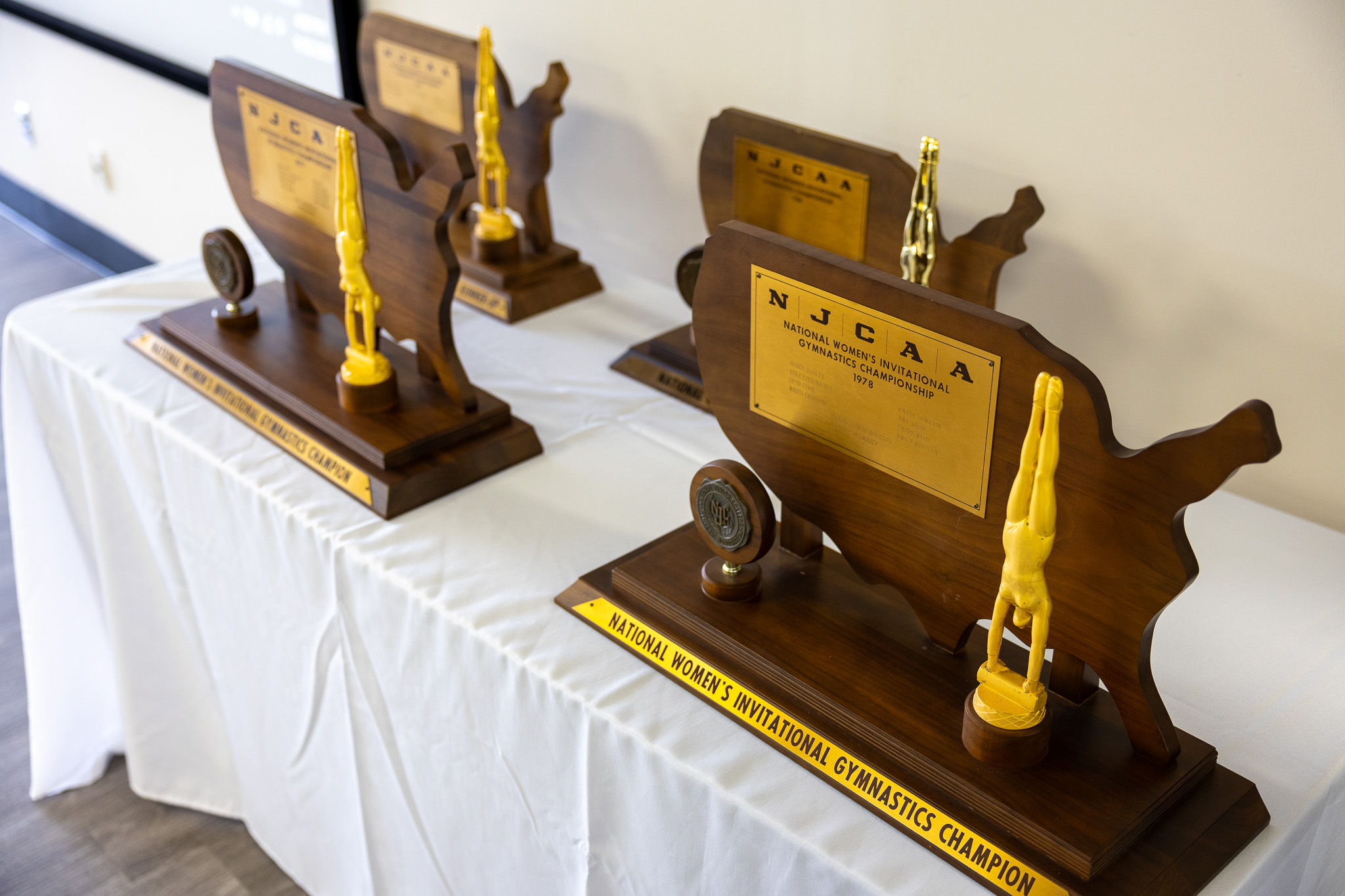 Members of Jefferson State’s 1977 and 1978 national champion gymnastics teams recently received rings commemorating their accomplishments.