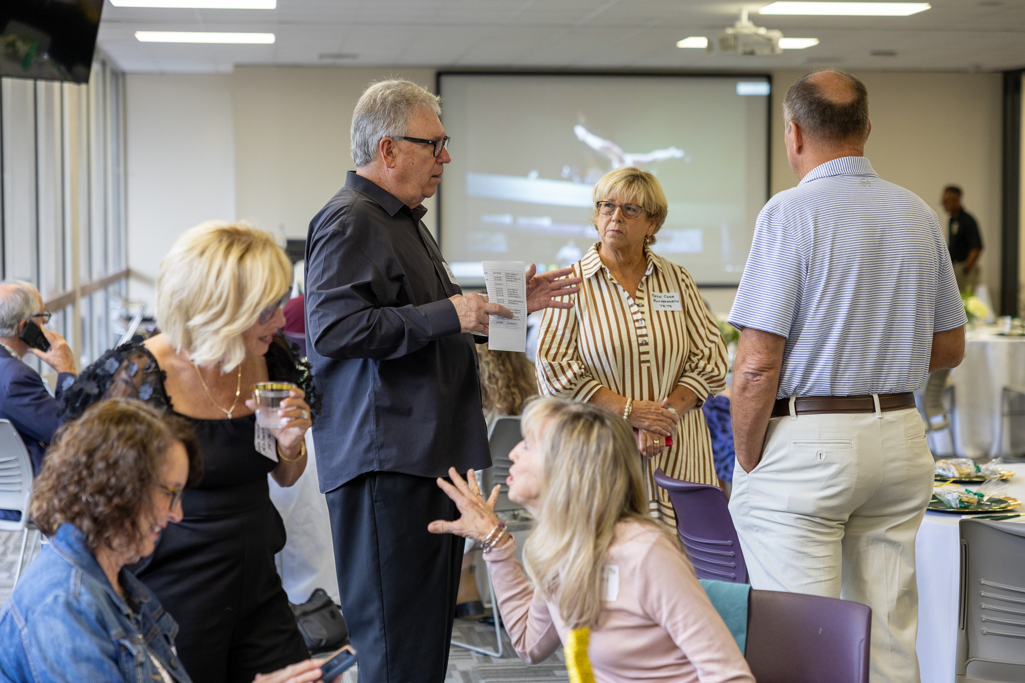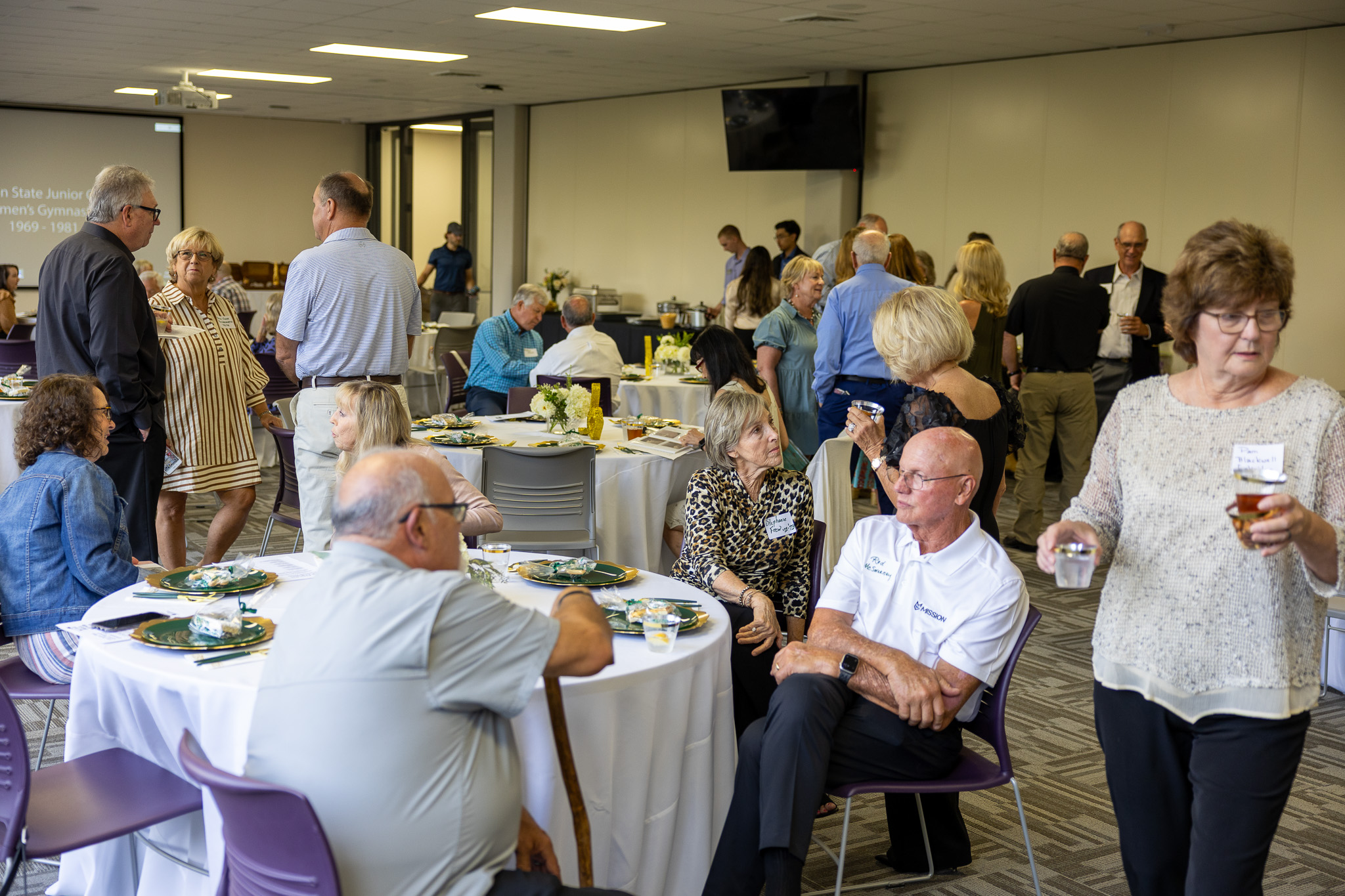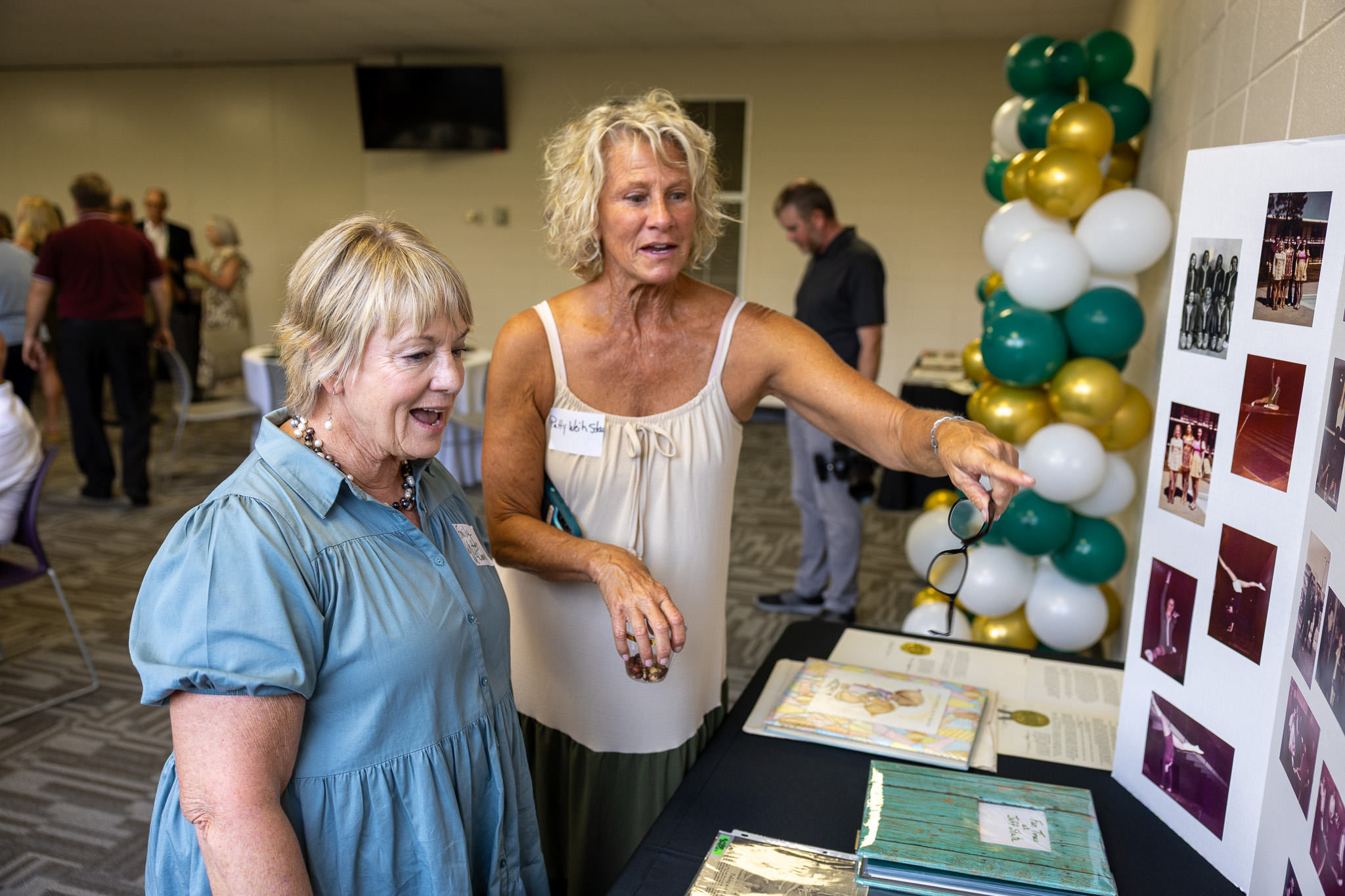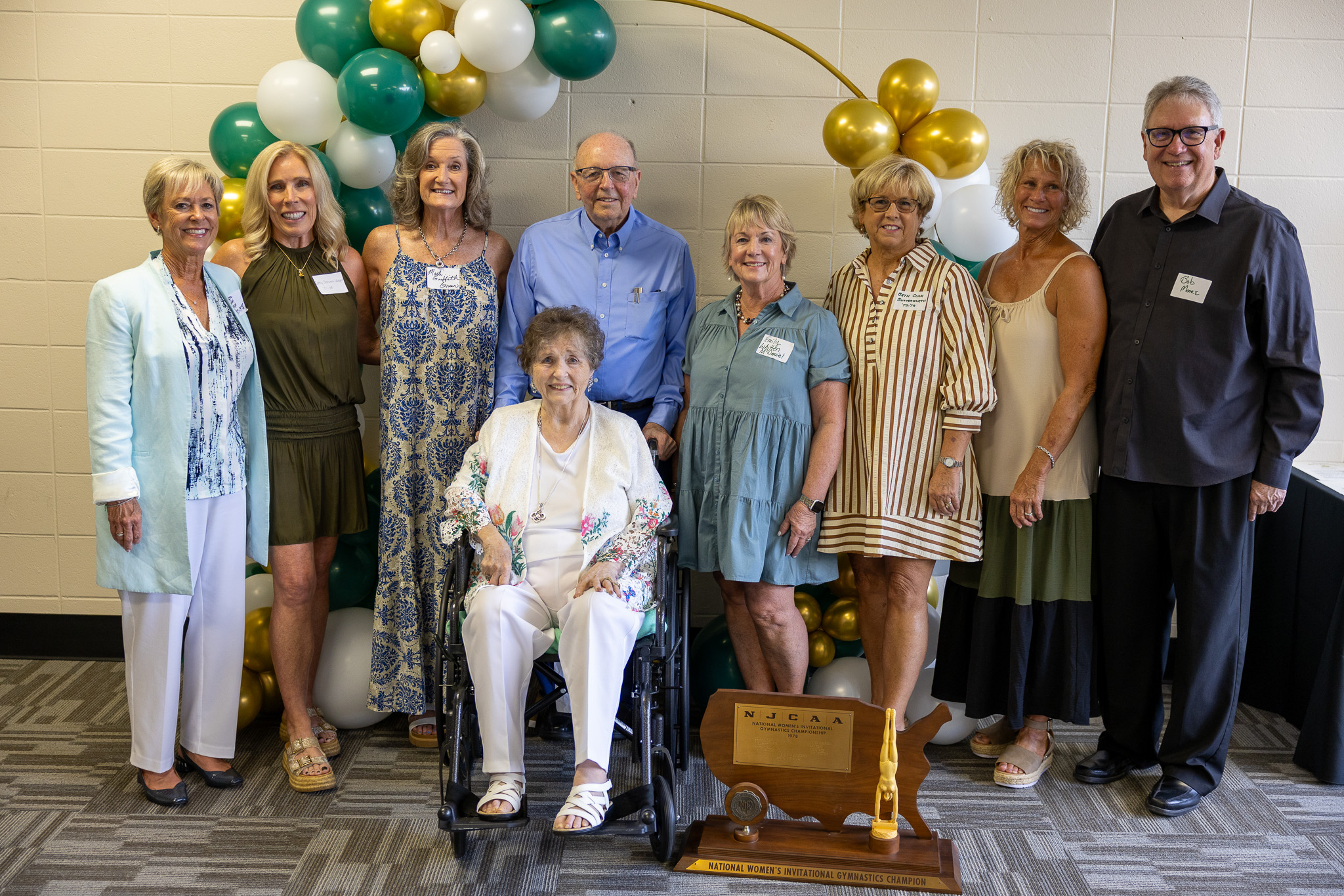 Coach Tom Henderson, who started the Jeff State gymnastics program and coached, welcomed the former gymnasts back to the college. He led them on a tour of their former competition gymnasium before they shared memories and enjoyed dinner.